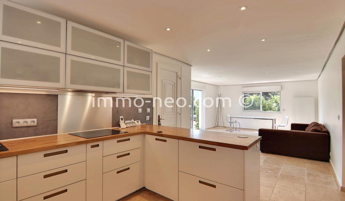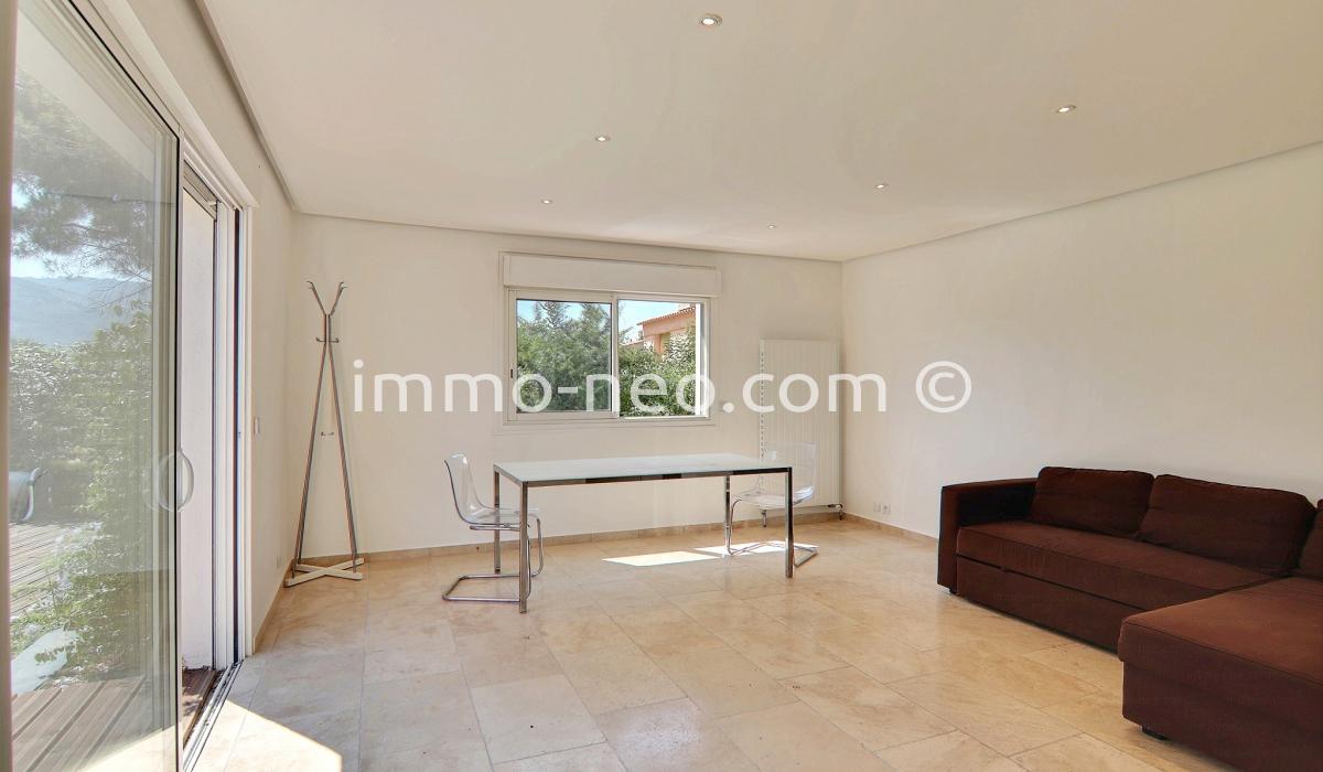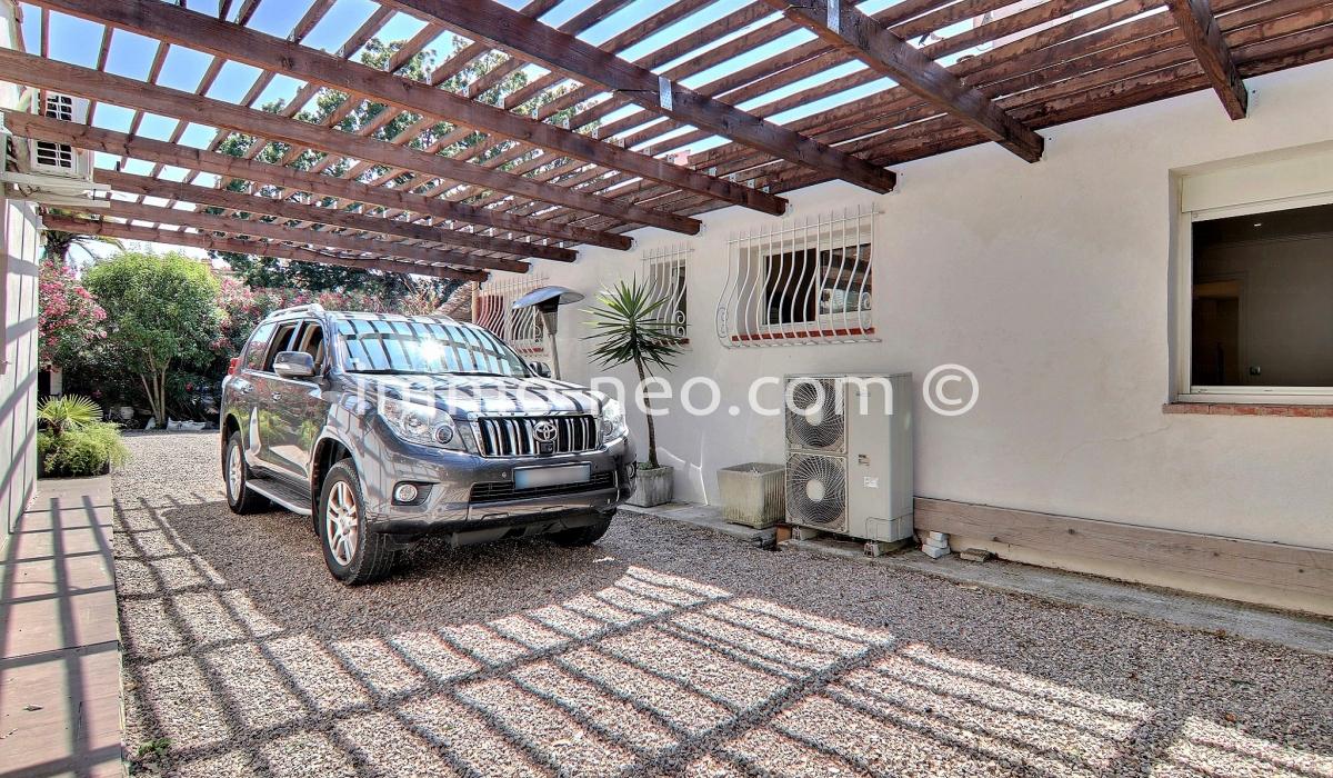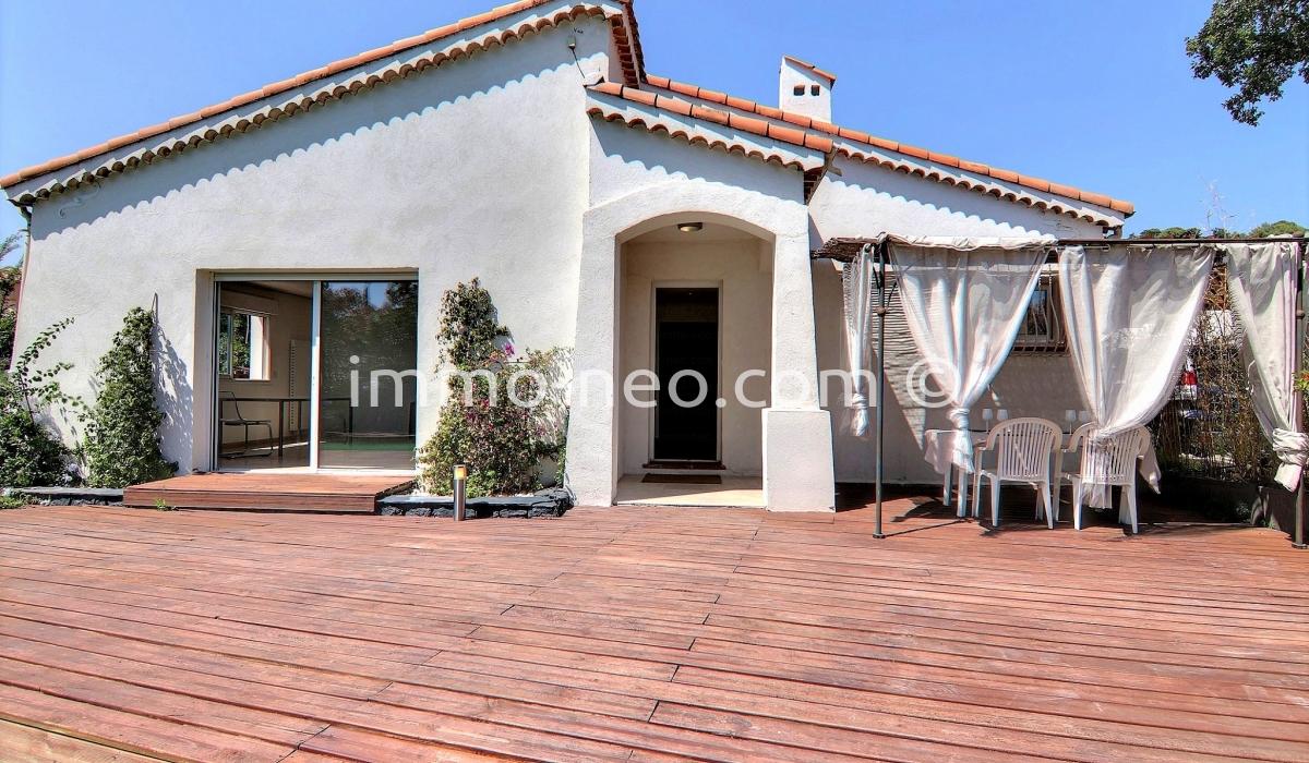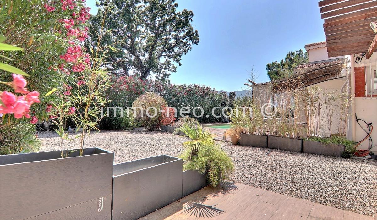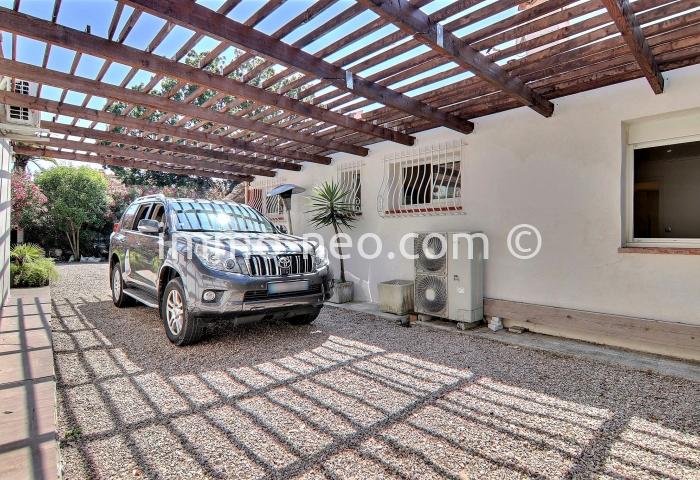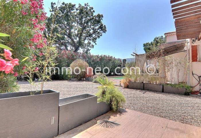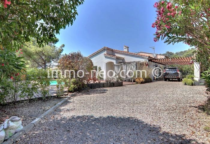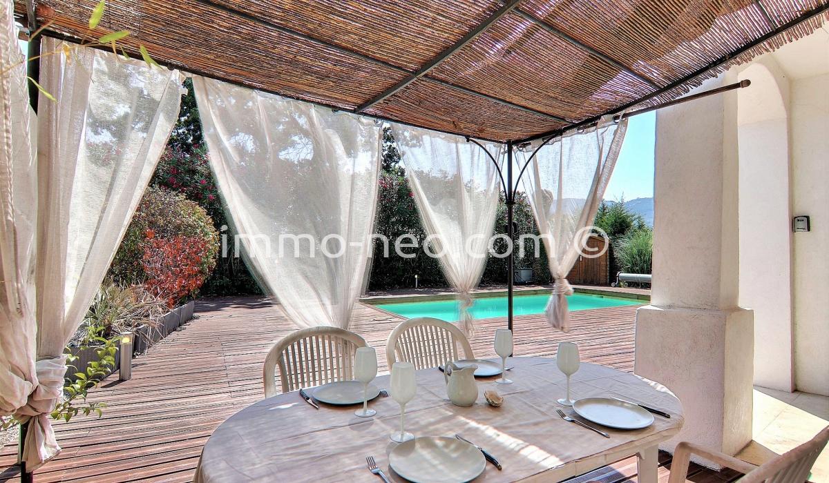 Particulier vend belle villa de plain-pied 5 pièces de 106 m², plus studio indépendant. Construite sur un terrain plat de 667 m² avec une belle piscine, entourée d'une terrasse en pin qui offre une vue sur le Tanneron. Abri voitures, parking et cabanon. Adresse du bien